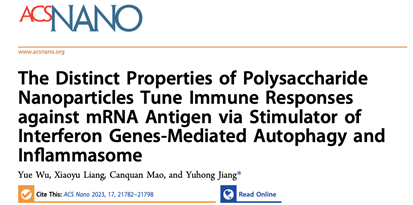 近日,公司江育虹副教授研究小组在国际TOP期刊ACS Nano (IF=17.1)上发表免疫佐剂机制领域论文“The Distinct Properties of Polysaccharide Nanoparticles Tune Immune Responses against mRNA Antigen via Stimulator of Interferon Genes-Mediated Autophagy and Inflammasome”,报道了多糖佐剂纳米化的免疫增强机制。江育虹副教授为通讯作者,2020级硕士研究生吴月为第一作者,硕士研究生梁晓钰参与部分工作,茆灿泉教授给予重要指导。