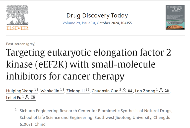 近日,365英国上市公司符雷蕾团队在美国药学权威期刊Drug Discovery Today上发表了一篇题为“Targeting eukaryotic elongation factor 2 kinase (eEF2K) with small-molecule inhibitors for cancer therapy”综述(https://doi.org/10.1016/j.drudis.2024.104155. 影响因子:6.5)。这篇综述总结了eEF2K 的分子结构及其在癌症中的致癌作用,包括血管生成、肿瘤细胞迁移、增殖、存活和上皮-间质转化(EMT),同时进一步讨论了针对eEF2K的小分子化合物的现状,包括单靶点、双靶点小分子化合物以及新出现的联合治疗策略,以期为肿瘤治疗提供新思路。论文第一作者为2023级硕士研究王会苹,最后通讯作者为符雷蕾,365英国上市公司为第一署名单位和通讯作者单位。