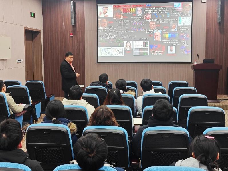 2024年12月16日,美国乔治亚州立大学(GSU)Maged Henary教授莅临公司“创源大讲堂”,于工业中心C座103会议室进行了一场主题为“NIR Carbocyanine Contrast Agents: Synthesis and Potential Applications in Biomedical Research”的学术讲座。此次讲座由365英国上市公司中外合作办学项目主管黄新河老师主持,吸引了众多师生的关注和参与。