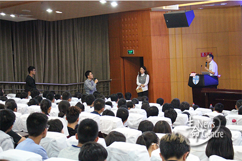 介绍完冷冻电镜结构生物学的相关理论内容后,隋森芳院士展示了该领域的相关试验结果。随后,同学们向隋院士提出生物学领域问题,隋院士在台上耐心为同学们解答。当被问到国内拥有可以进行冷冻电镜技术实验的公司数量和该技术在我国发展现状时,他表示,如今国内已有二三十所大学具备该项实验相关条件,并指出该项技术目前在国内发展迅速,其难度处于国际前沿之一。