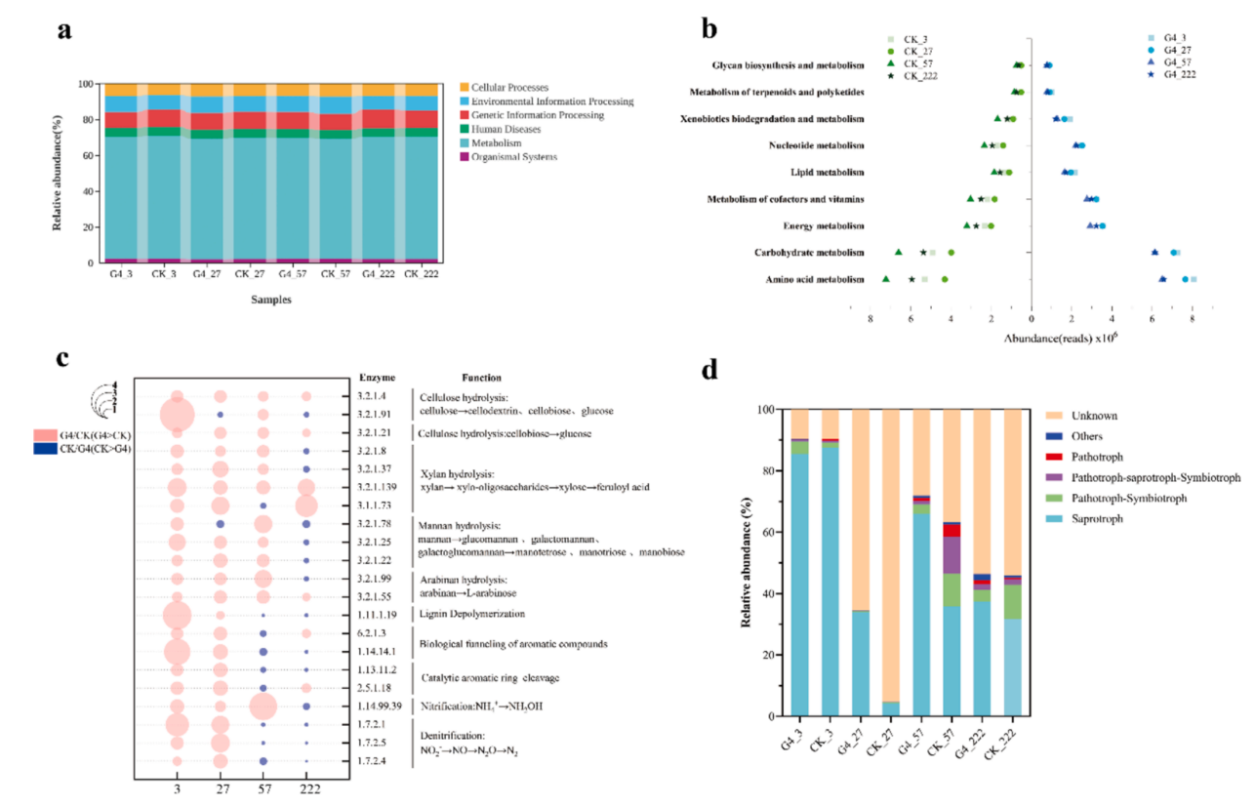 ² MMI引入显著提升外源功能菌属丰富,富集木质纤维素降解酶和氮代谢基因。