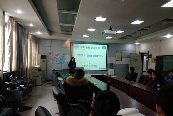 随后,江育虹老师以“GPCR in drug discovery”为题,为大家介绍了GPCR蛋白PAR2偏执激动剂的设计与表征,以及PAR2拮抗剂I-191在人类结直肠癌细胞系HT-29中对PAR2下游多个信号通路的调节作用。最后,江老师进一步展望了PAR2拮抗剂在肿瘤治疗中的应用前景,并介绍了她目前正在进行的有关PAR2拮抗剂的相关工作。