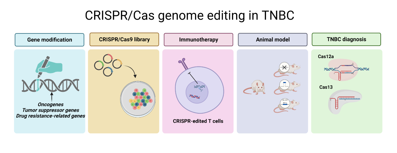 众所周知,三阴性乳腺癌(TNBC)与癌基因和抑癌基因的异常表达密切相关。虽然已经发现了TNBC的几个致病突变,但目前的治疗策略通常是为了缓解症状,而不是纠正DNA序列中的突变。CRISPR/Cas已逐渐被认为是一种突破性的基因编辑工具,在包括三阴性乳腺癌在内的人类癌症中具有潜在的治疗应用。