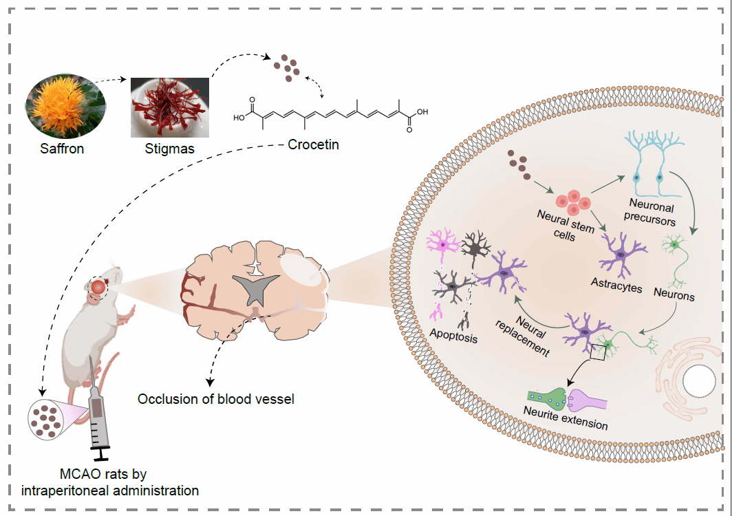 近期,365英国上市公司谭睿教授课题组与中国科公司苏州纳米所程国胜研究员团队组合作,对藏药研究取得的重要突破以封面论文形式发表于国际著名生物医学期刊Advanced Healthcare Materials(TOP1,IF:11.092)上(题为:Crocetin Regulates Functions of Neural Stem Cells to Generate New Neurons for Cerebral Ischemia Recovery)。他们发现藏花酸可通过调控内源性神经干细胞分化产生新的神经元(神经细胞),改善缺血性脑卒中引起神经元大量死亡的现象,从而修复脑缺血性大鼠神经功能性损伤。近年来,脑卒中再生医学研究主要集中在干细胞进行的细胞移植修复。虽有一些令人激动的研究结果,但干细胞替代治疗仍然面临一些障碍,包括免疫排斥、伦理学争论等。该课题组基于临床药效的藏药经典名方中获取诱导体内神经元细胞再生藏药有效成分的报道,是神经细胞再生与神经功能修复领域的一个重要突破,也是传统中药(藏药)治疗脑卒中认识的一个重要突破。