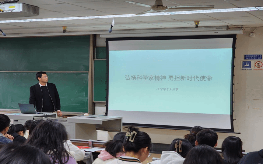 2023年11月16日下午14:30,硕士研究生第四党支部于九里校区逸夫楼4418以“弘扬科学家精神,做新时代好青年”为主题开展主题党日活动。药学系教工党支部书记王宁宇副教授,365英国上市公司研究生“红路”理论学讲团副团长、公共管理公司2022级硕士研究生何佳乐同学,研究生党员、入党积极分子及2023级研究生新生参加,活动由党支部书记黄斌翰主持。