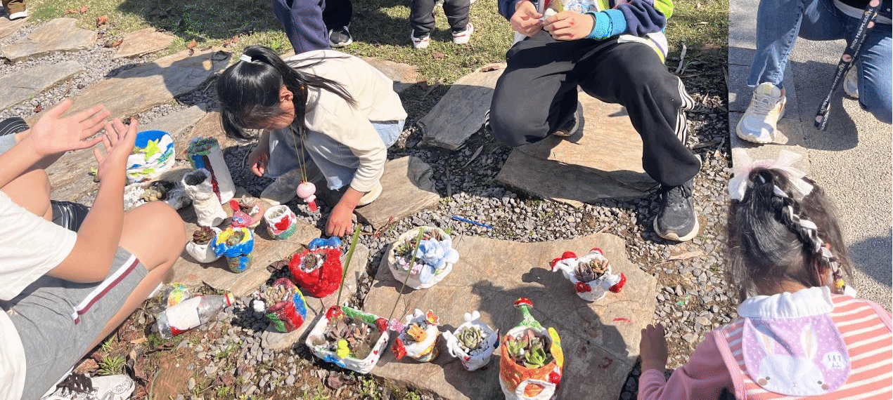 在实践活动中,兰老师设计了一项创新的垃圾分类游戏,通过贴纸和明信片的互动方式,使小朋友们在游戏中掌握垃圾分类的基本知识。此外,兰老师还引导家长和孩子们利用废弃物品,如果冻壳和塑料瓶,结合环保材料超轻粘土,创作出具有个性化的手工艺品,并进行上色和种植多肉植物,同时,向小朋友们介绍三原色的概念,以此培养小朋友们的环保行为习惯和创新思维。