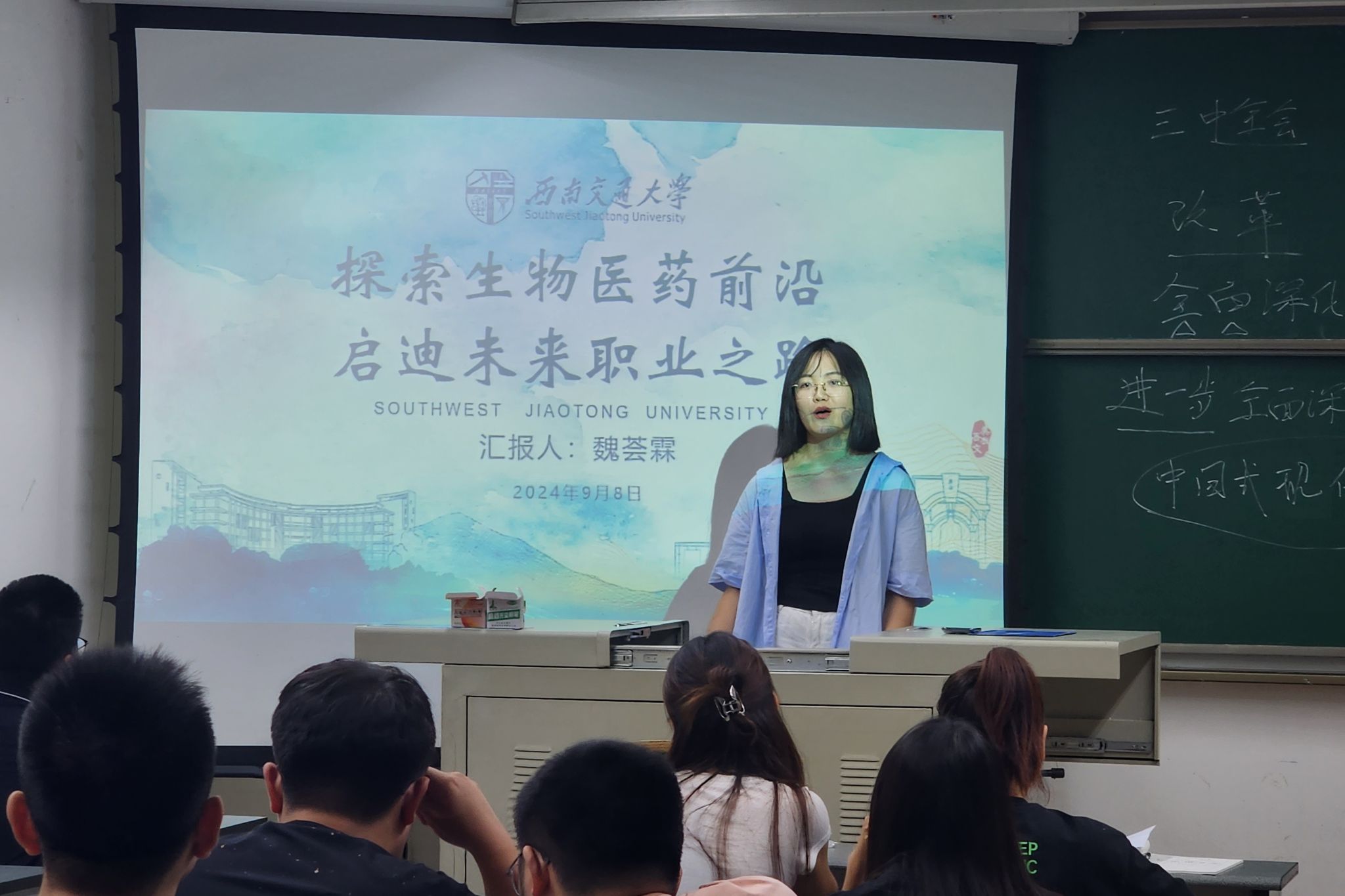 暑假,部分支部成员参与了实习实践等社会活动。在本次活动中,魏荟霖同学分享了在广东省佛山市开展“同心育人”校企对接暑期社会实践的心得体会。她谈到,此次参观不仅拓宽了自己的专业视野,更让她对生物医药行业的现状与发展趋势有了更为直观和深入的认识。黄老师号召同学们积极参与公司“访企拓岗”等活动,不断提升行业认知,强化职业素养,并鼓励2025届毕业生党员保持信心,积极求职。