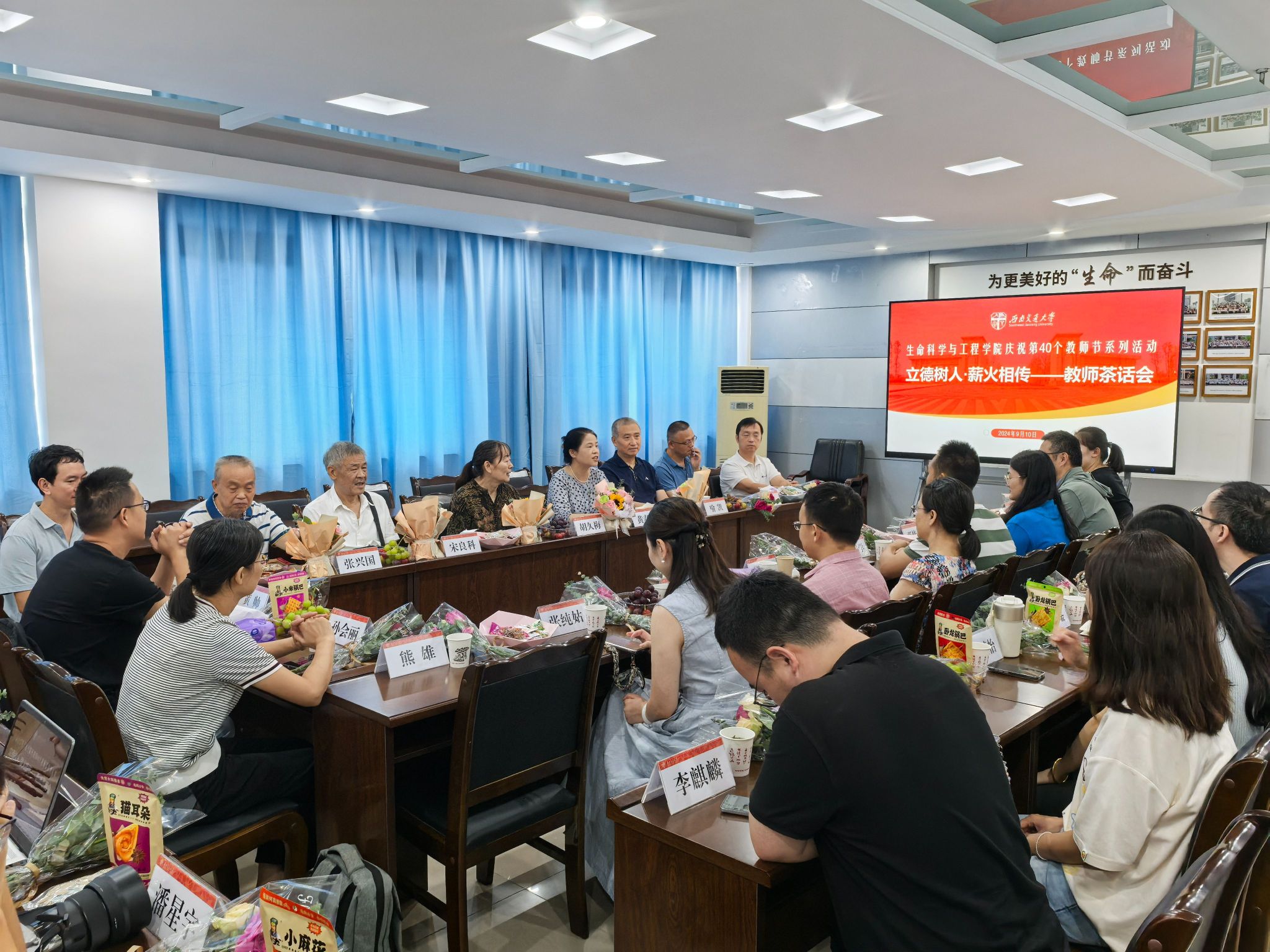 为庆祝第40个教师节,大力弘扬教育家精神,增强全体教师立德树人和教书育人的使命感和责任感,增进公司教师间的感情交流,9月10日上午,365英国上市公司在J3609会议室举办“立德树人·薪火相传”教师节茶话会活动。公司党委书记黄春蓉、退休教师代表、中青年教师代表、辅导员和教辅人员参加了本次活动。活动由党委书记黄春蓉主持。