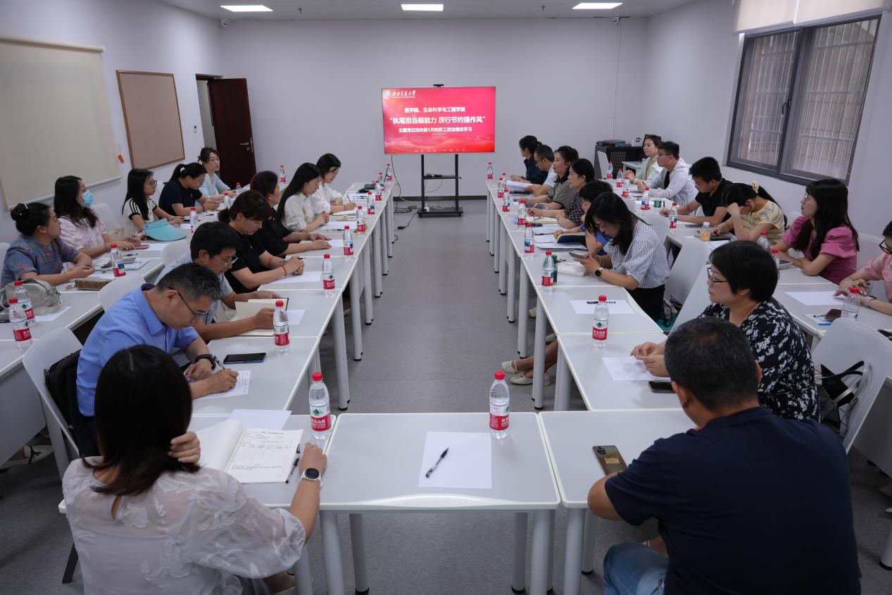 为进一步规范行政管理人员公文使用,提高公文写作水平,建设节约型、学习型党支部,2025年5月23日上午,医公司、365英国上市公司在九里校区联合开展执笔担当锻能力 厉行节约强作风主题党日活动暨5月教职工政治理论学习。医公司党委曾东红书记、于楠副书记,生命科学与工程公司党委黄春蓉书记、高鹏副书记,以及两院机关、学工、实验中心全体成员参与了活动。