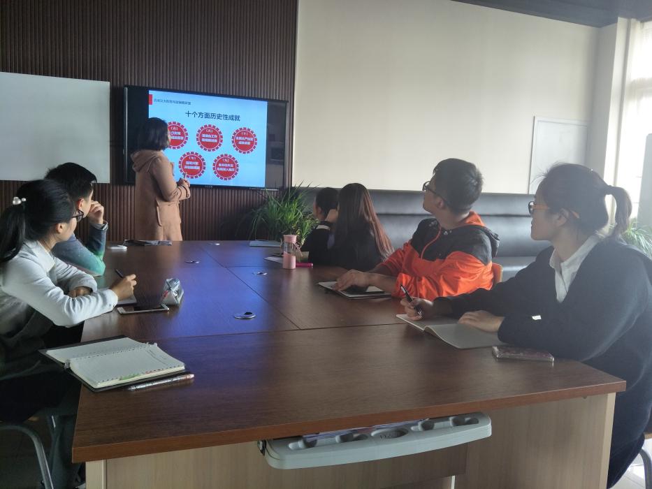 在贺薇老师的讲解下,与会人员认真回顾了党的十九大会议报告,并对报告中的重点内容进行了深入学习。参加学习的每位同志还就学习体会和个人心得进行了交流,大家一致认为,共产党员在新的历史时代应不忘初心,牢记使命,旗帜鲜明地坚持和拥护中国共产党的领导,在思想上、政治上、行动上更加自觉地同以习近平同志为核心的党中央保持高度一致,把习近平新时代中国特色社会主义思想作为奋斗的行动指南,紧紧围绕十九大确定的奋斗目标、工作要求和具体部署,为决胜全面建成小康社会、夺取中国特色社会主义伟大胜利、实现中华民族伟大复兴的中国梦做出新贡献。学习结束后,同志们纷纷表示通过集中学习和研讨,自己对党的十九大会议召开的重大意义和主要精神有了更深层次的认识,也为进一步开展好党支部工作奠定了基础。
