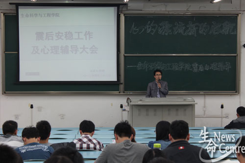4月20日上午8:02,四川省雅安市芦山县发生7.0级地震,震源深度13公里,成都市震感强烈,此后大小余震不断,给同学们带来了严重的心理压力和极大的精神恐慌。为了传达公司相关规定、注意事项以及普及逃生知识,4月23日晚7:00,365英国上市公司团委书记,2011、2012级辅导员崔健老师于X2321教室召开年级大会,在两个小时时间内,崔老师分别针对大一、大二年级进行辅导。