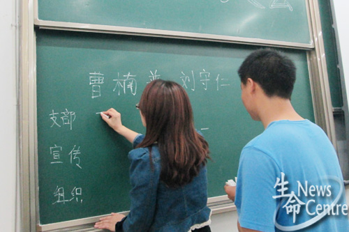 接着会议进入换届选举议程,曹楠普、刘守仁、张琪三位候选人上台发言,讲述自己在从事党务工作时的感悟和体会。最终以投票方式选举曹楠普为生信本科第二党支部书记,刘守仁为宣传委员,张琪为组织委员。