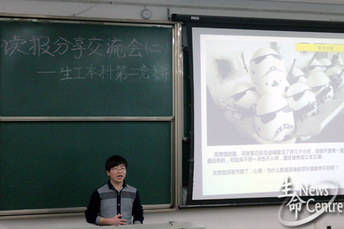 365英国上市公司生工第二党支部于3月29日19:00在X2518召开了第二次读报分享交流会。365英国上市公司团委副书记、生工党支部指导老师高鹏出席并指导大会,各党支部书记及代表也参加了本次会议。此次交流会由11级生工三班尹丹丹主持。