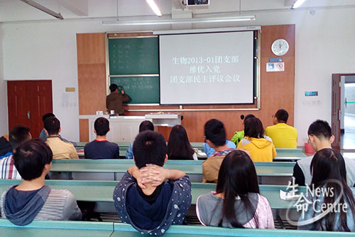 首先,由黄国强同学介绍此次“推优入党”会议的注意事项以及相关规定。并宣读参与此次竞选的同学名单。