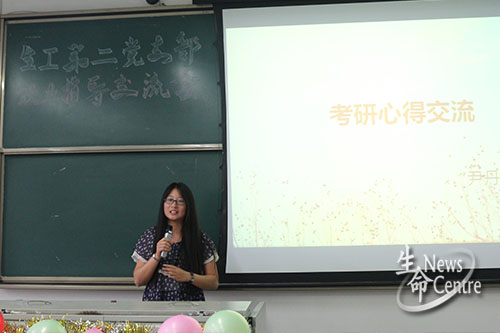 本科生工第二党支部指导老师张敬文、兄弟党支部书记赵雷蕾、黄灿等出席大会,而2011级保送至浙江大学的彭琪、考研至四川老员工物治疗国家重点实验室的尹丹丹及成功签约中国联通的张晓帆作为主讲嘉宾,本次交流会由预备党员2013级生工四班王漫丽同志主持。