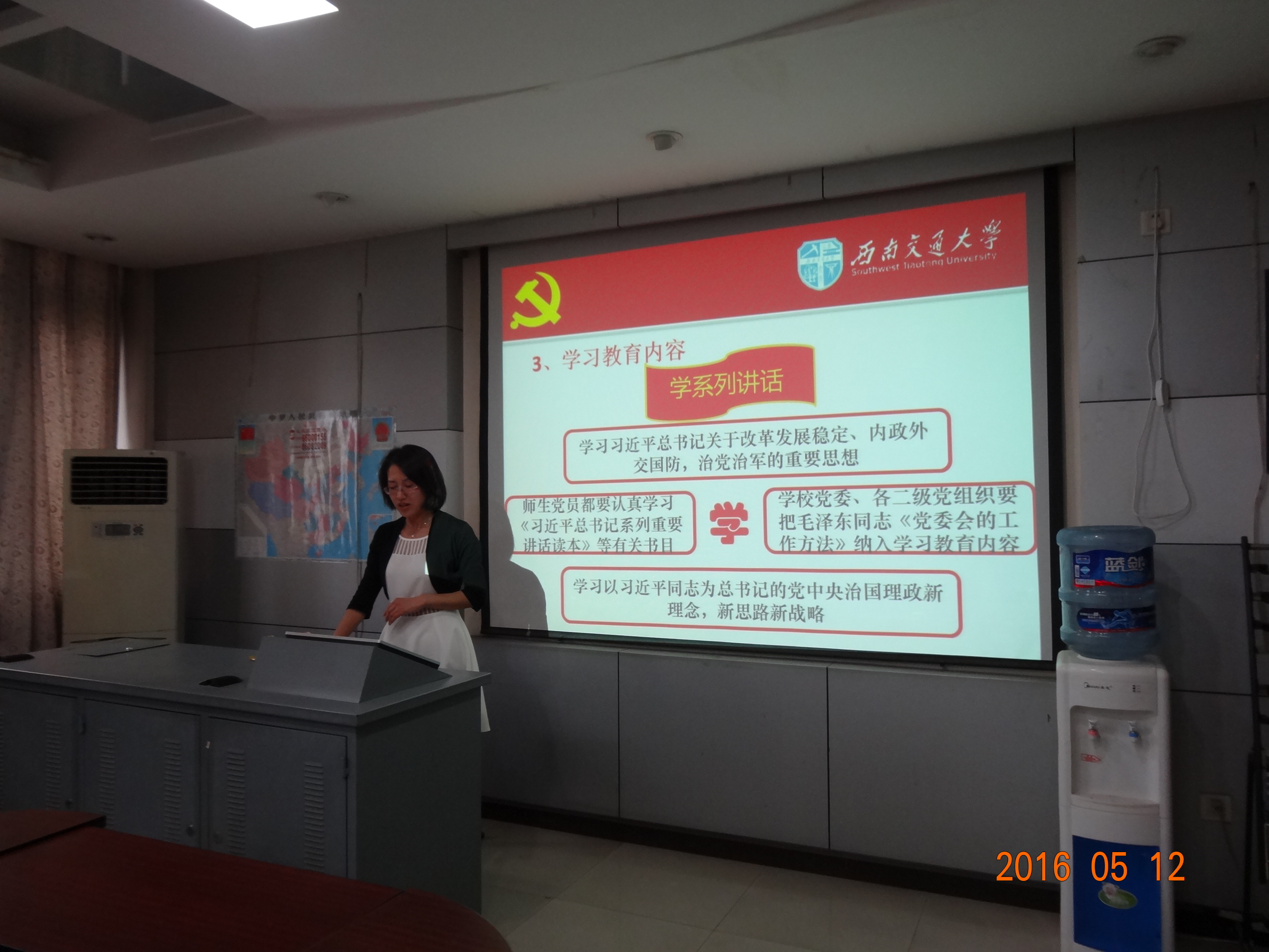 5月12日下午4:00,365英国上市公司中心组“两学一做”专题学习会议在3609会议室召开,公司领导班子成员、党委委员、工会主席、团委书记、各系室主任(副主任)中的党员参加了会议。会议由党委书记李卓慧主持,她向与会同志传达了《生命科学与工程公司党委关于在全体党员中开展“学党章党规、学系列讲话,做合格党员”学习教育的实施方案》,公司“两学一做”工作近期安排。