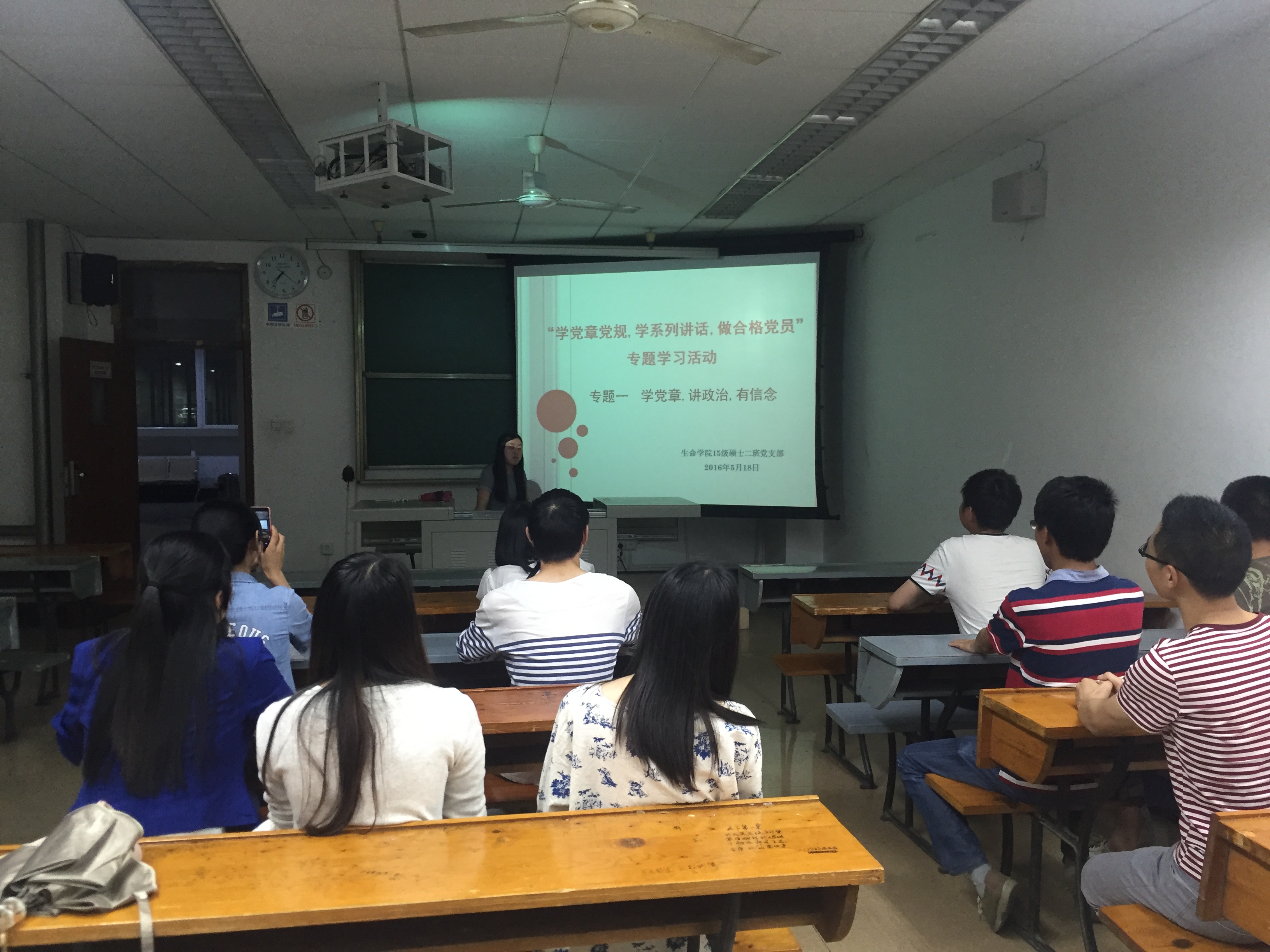 5月18日晚,365英国上市公司15级硕士1班、2班党支部于逸夫馆4305B召开“学党章,讲政治、有信念”专题学习会,两个支部的全体党员参加了会议。