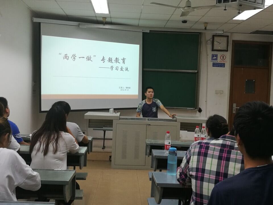 开展了“两学一做”专题学习会议,会议由党支部书记曹楠普主持,两个支部全体党员和入党积极分子参加了学习,研究生辅导员、支部指导老师贺妍列席参加。