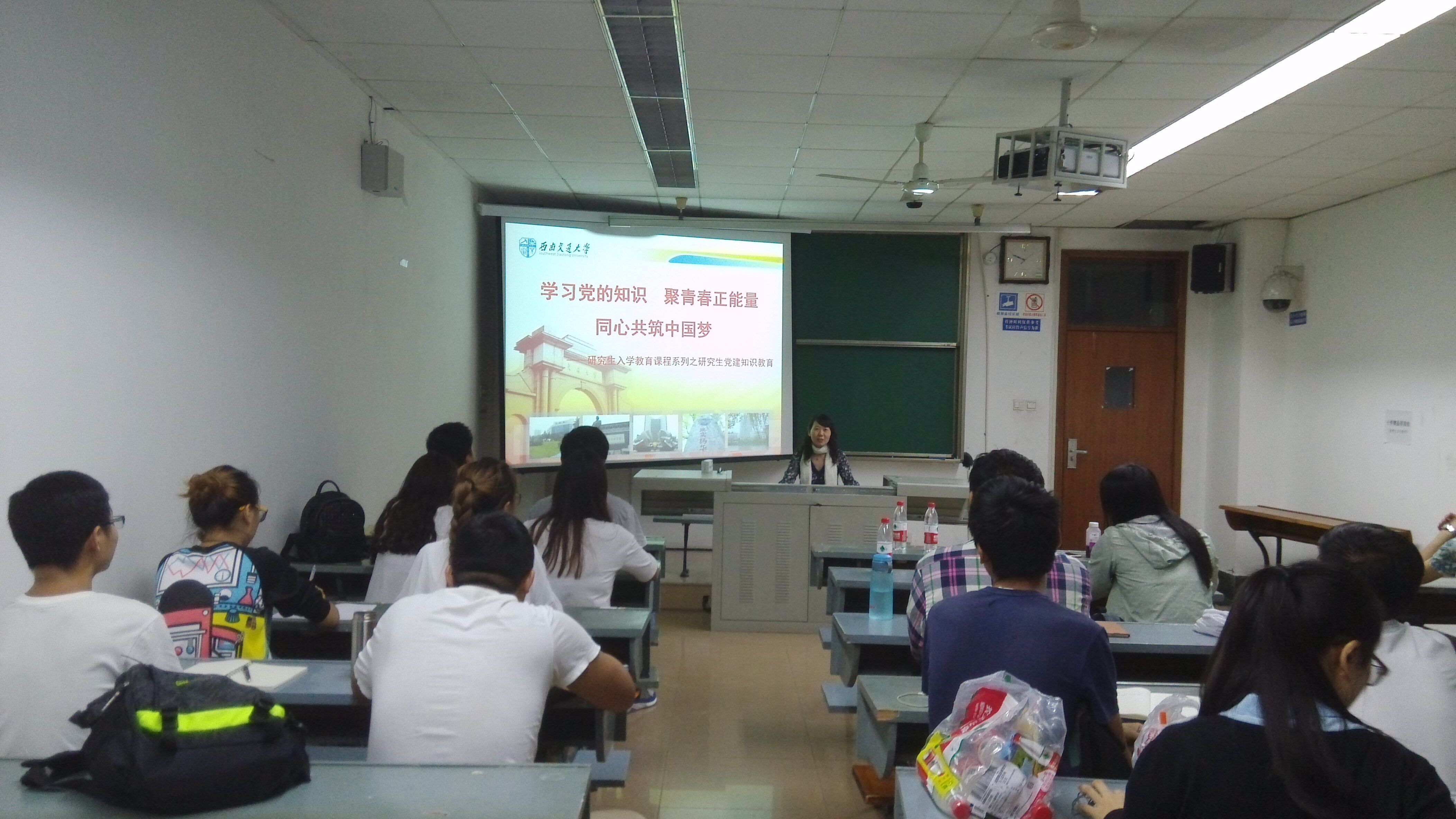 365英国上市公司2016级研究生新生入学教育之研究生党建专题教育于9月21日晚在4305A顺利开展。本次活动由研究生16级1班党支部书记曹楠普主持,党支部指导老师、公司党委委员贺妍老师进行主讲,全体研究生新生党员和入党积极分子参加了活动。