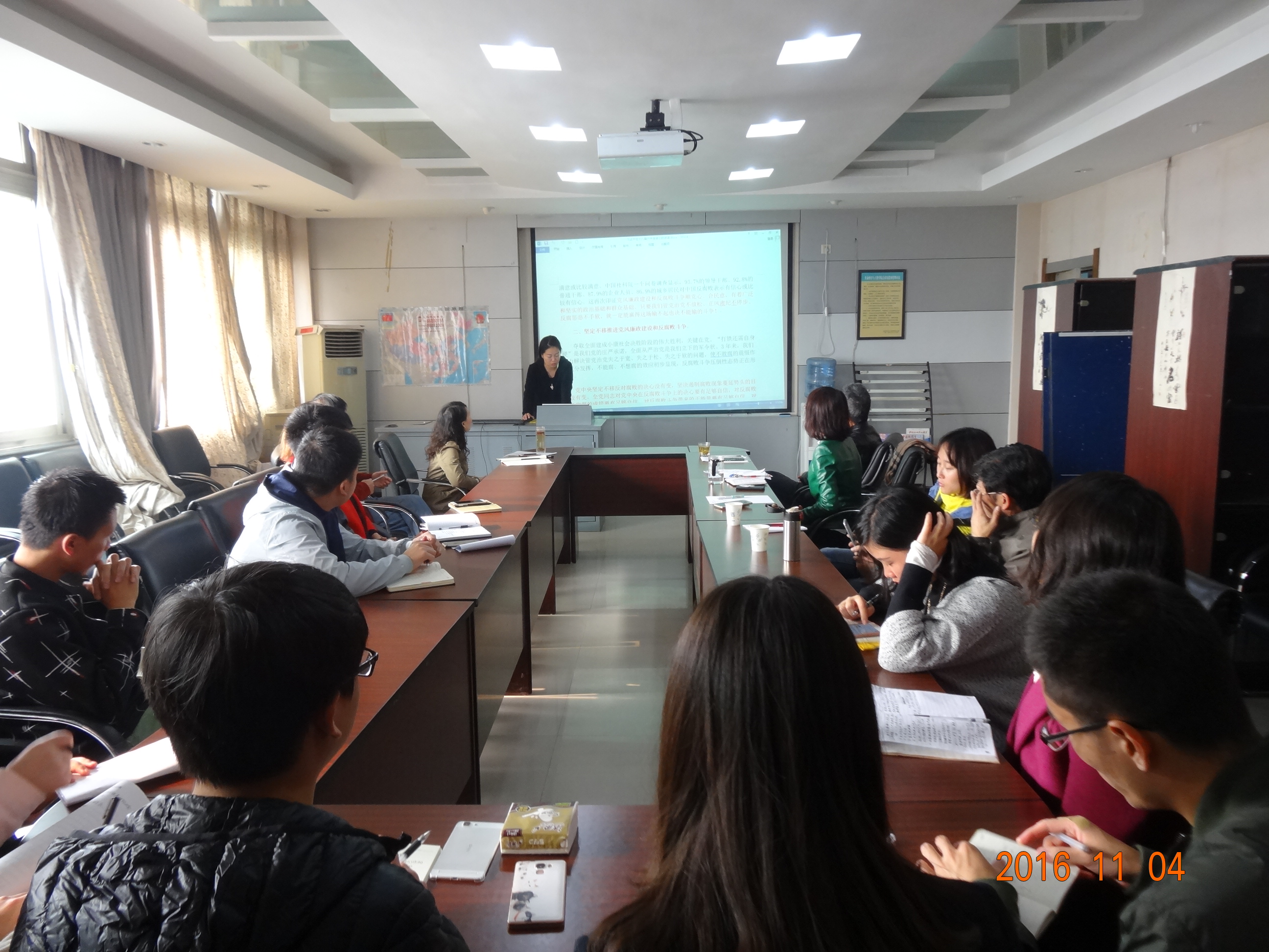 首先,党委委员贺妍总结了10月份公司各支部“两学一做”学习教育开展情况。 随后,党委书记就公司11月“两学一做“主要学习内容进行了安排部署,特别是就学习贯彻十八届六中全会精神及”学先进、讲奉献、有作为“专题内容进行了安排。