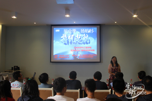 会议伊始,高峰首先为毕业生送上寄语,他希望同学们能够坚持专业的方向,心怀感恩、终身学习,在追逐目标中实现人生价值。接着蒋合众、万军、魏桂花和田原先后为毕业生们送上毕业祝福,并表示在今后的生活中仍然可以为同学们提供力所能及的帮助。在老师们表达对同学们的美好祝福和殷切希望后,员工代表们回顾老员工活并与大家分享毕业感想。