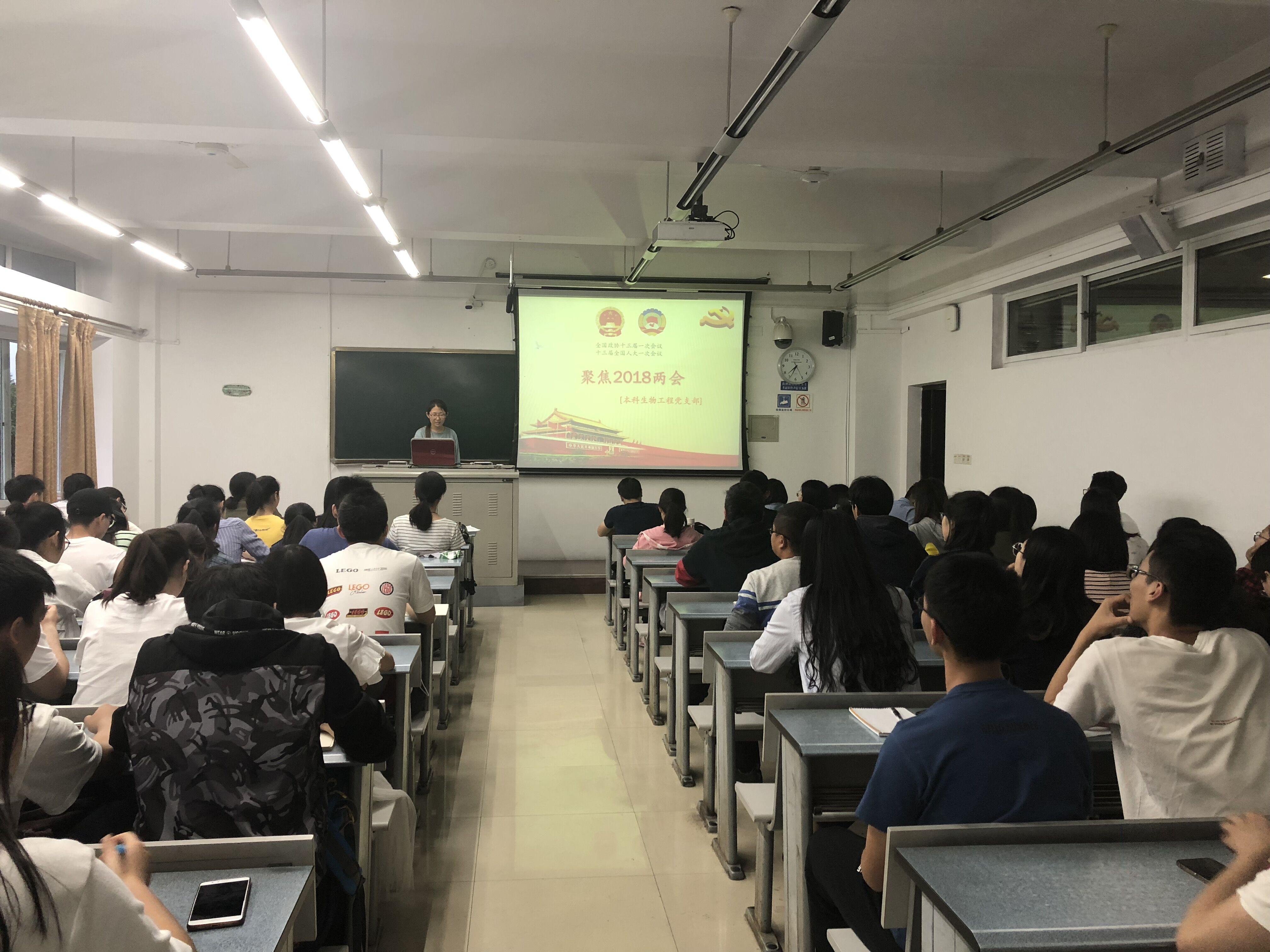 4月27日19:00,本科生物工程党支部在X1219召开专题学习会,集中学习公司全面从严治党会议精神和2018全国“两会精神”。会议由本科生物工程党支部副书记罗桂芳主持,本科生工党支部全体党员参加。