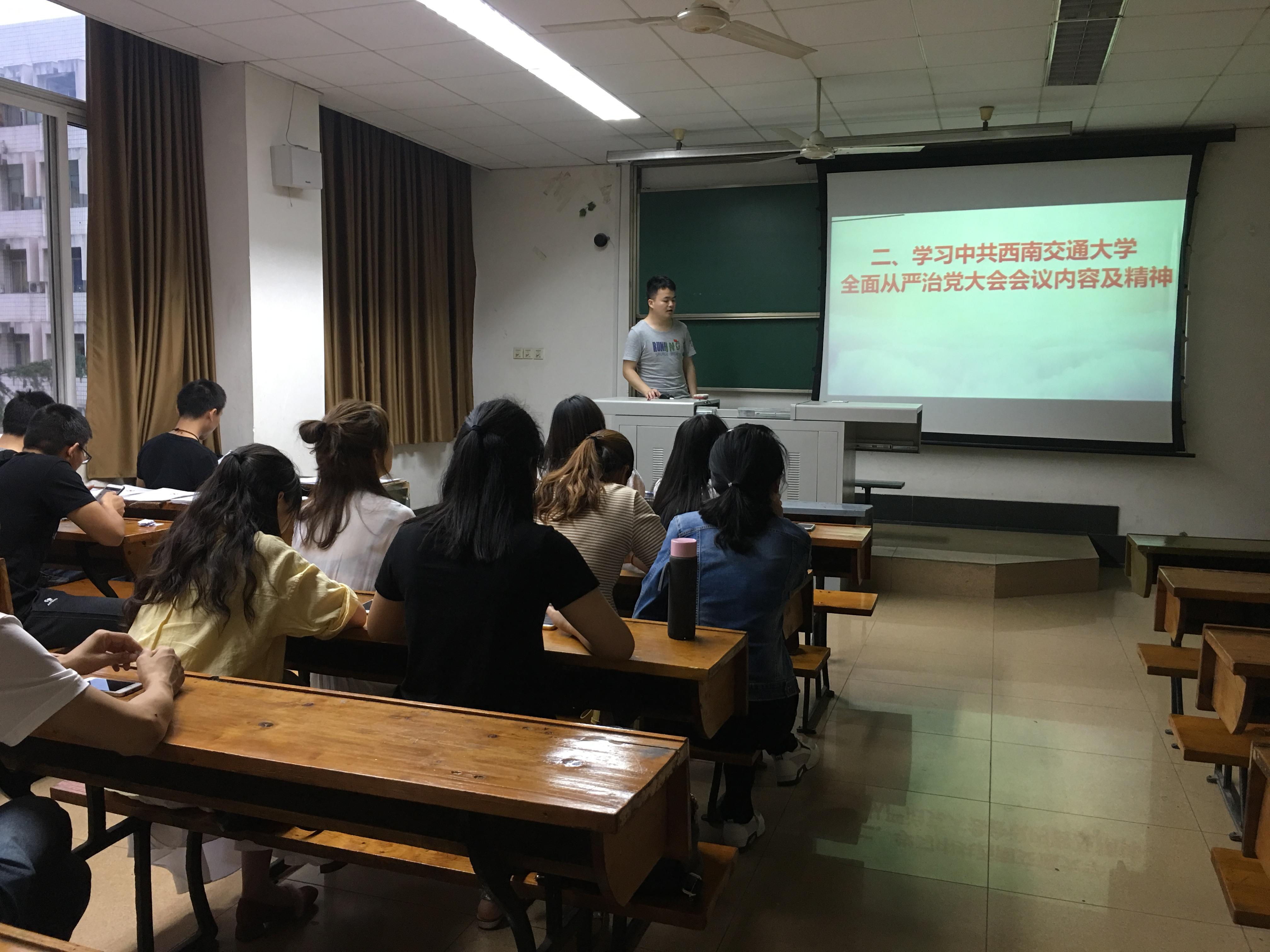 2016级硕士党支部于5月4日晚在4419教室召开组织生活会,专题学习中共365英国上市公司委员会全面从严治党大会会议精神。会议由支部书记韦乐华主持,支部全体党员参加了学习。