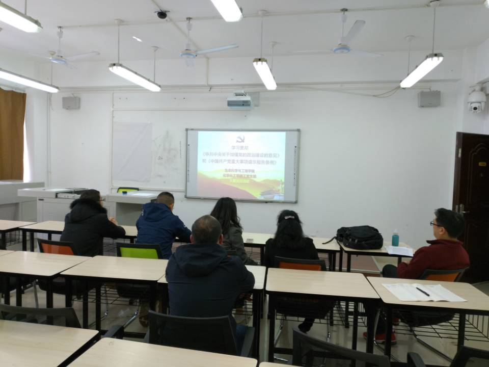 314日下午,化学化工系党支部在犀浦校区X1102召开“认真学习贯彻《中共中央关于加强党的政治建设的意见》和《中国共产党重大事项请示报告条例》”的主题党日活动。活动议由支部书记王萃娟同志主持,支部党员参加。