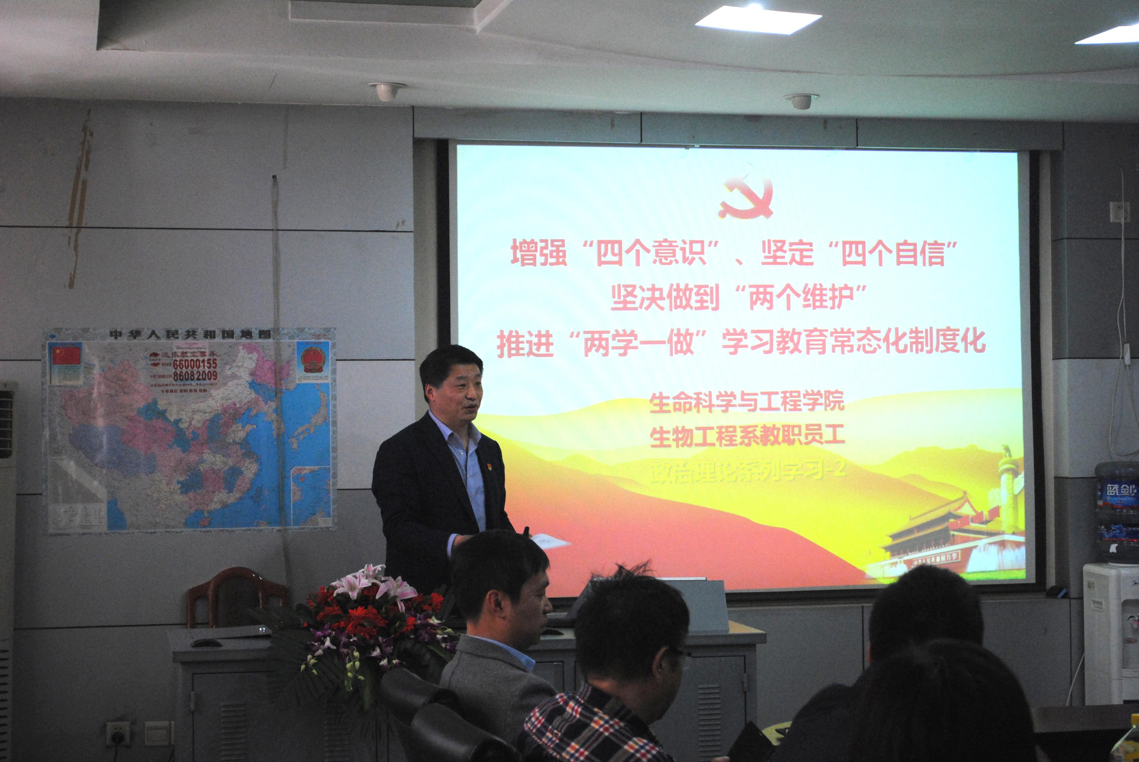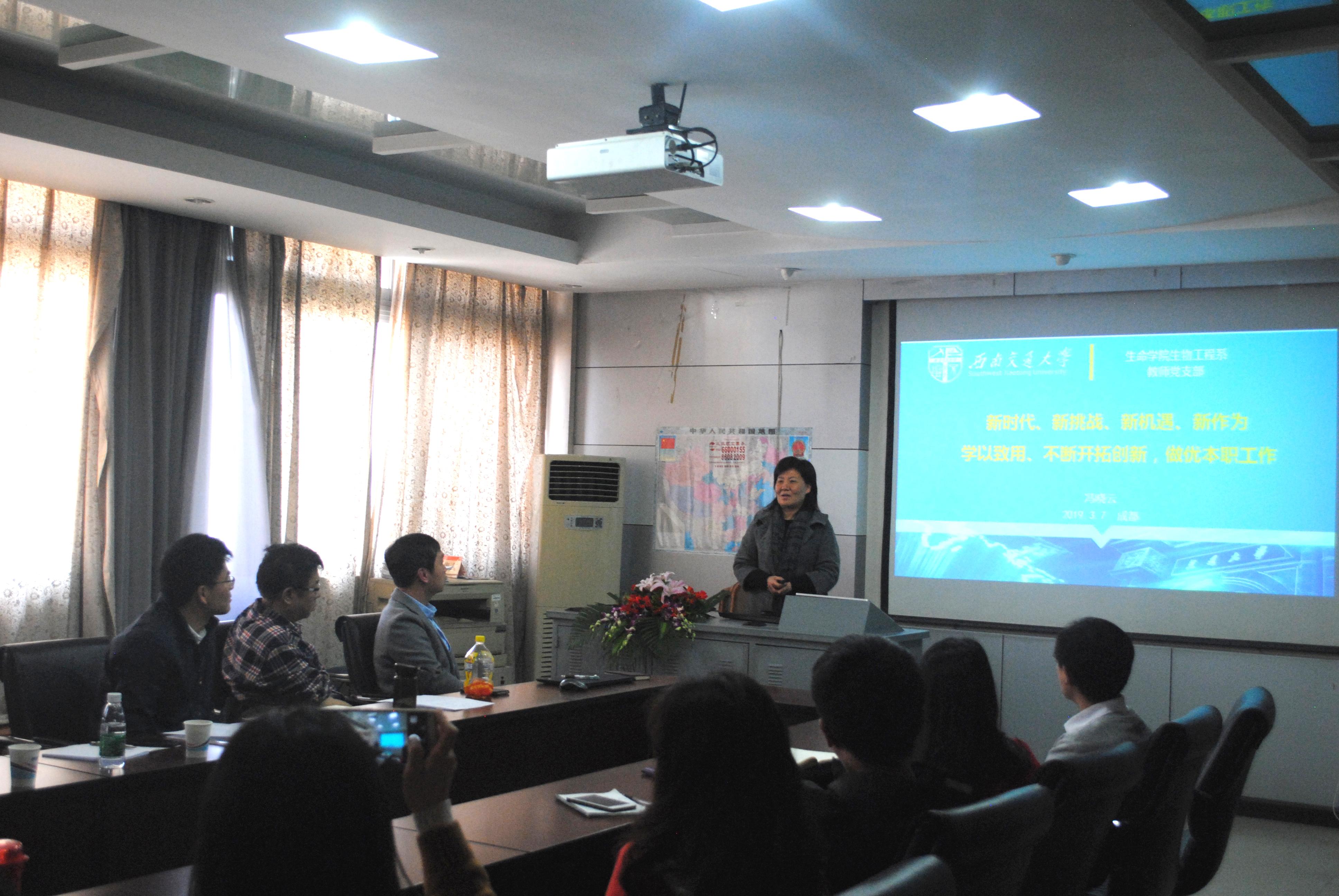 3月28日下午,生物工程系全体党员教职员工齐聚九里校区电气馆3609,开展习近平总书记在高校思政教师座谈会上讲话精神的集中学习,围绕“立德树人”全面推进生命板块人才培养工作进行研讨,冯晓云副董事长来到公司参加了本次主题学习活动并作了重要讲话。生命科学与工程公司党委书记葛永明同志参加了本次主题学习,生物工程系党支部书记孟涛同志主持研讨。