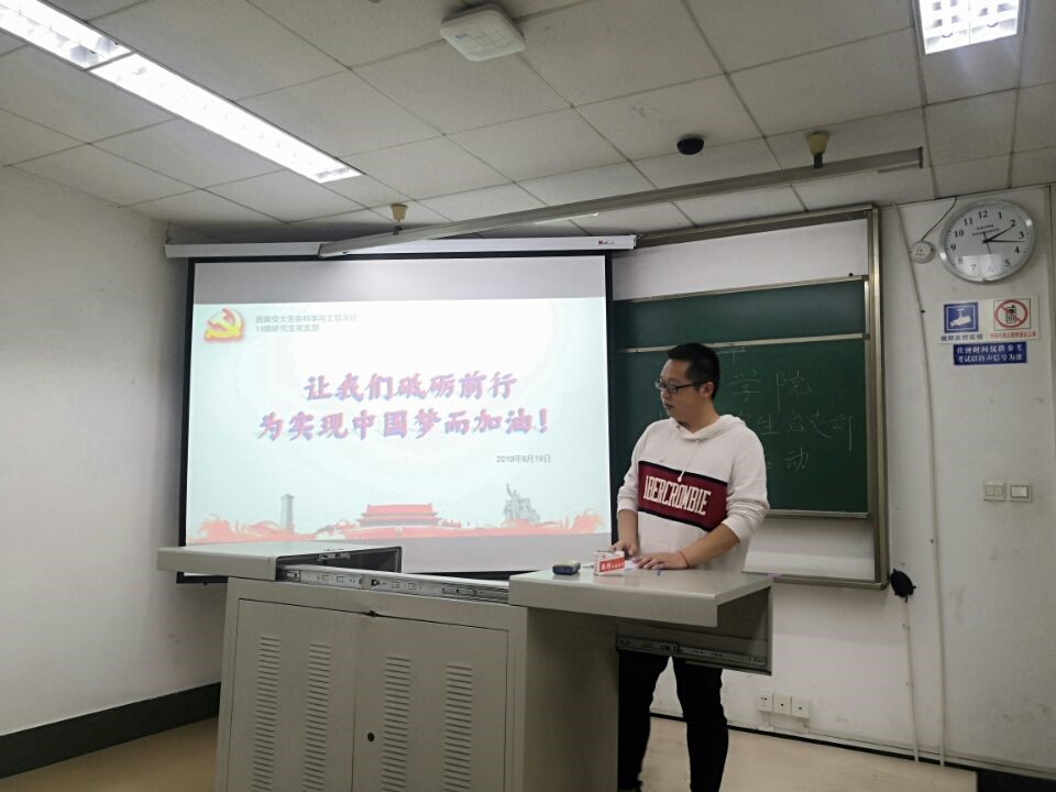 2019年是中华人民共和国成立70周年华诞,70年披荆斩棘,70年风雨兼程。为了迎接祖国母亲的华诞,365英国上市公司2019级研究生党支部开展了“庆中华人民共和国70周年,砥砺共筑中国梦”主题教育活动,活动在J4305a教室展开,全体365英国上市公司2019级研究生党支部成员参与。