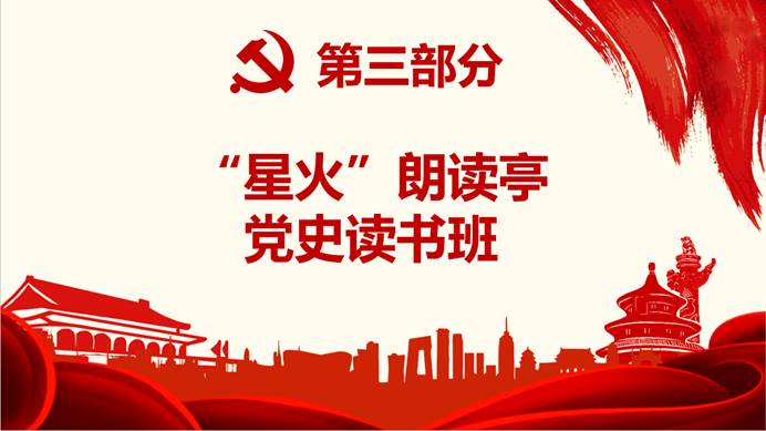 最后,展开“‘星火’朗读亭——党史读书班”党史学习分享活动,同学们积极参与,踊跃发言。其中赵辰晖同学讲述了“五四运动”的背景及意义,李亦君同学讲述了“党的十五大和确立邓小平理论为党的指导思想、改革开放的深入推进”,唐海峰同学讲述了“遵义会议”的内容并指出其对我们向第二个百年奋斗目标进军的启示价值。