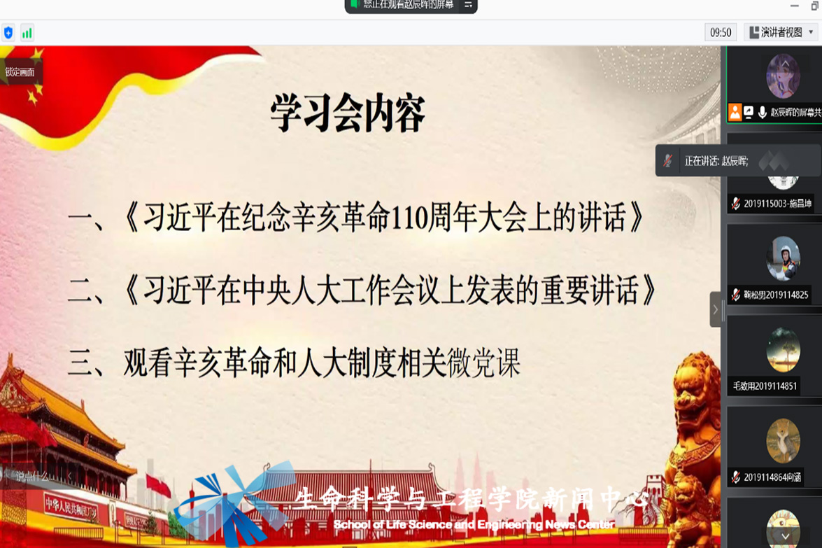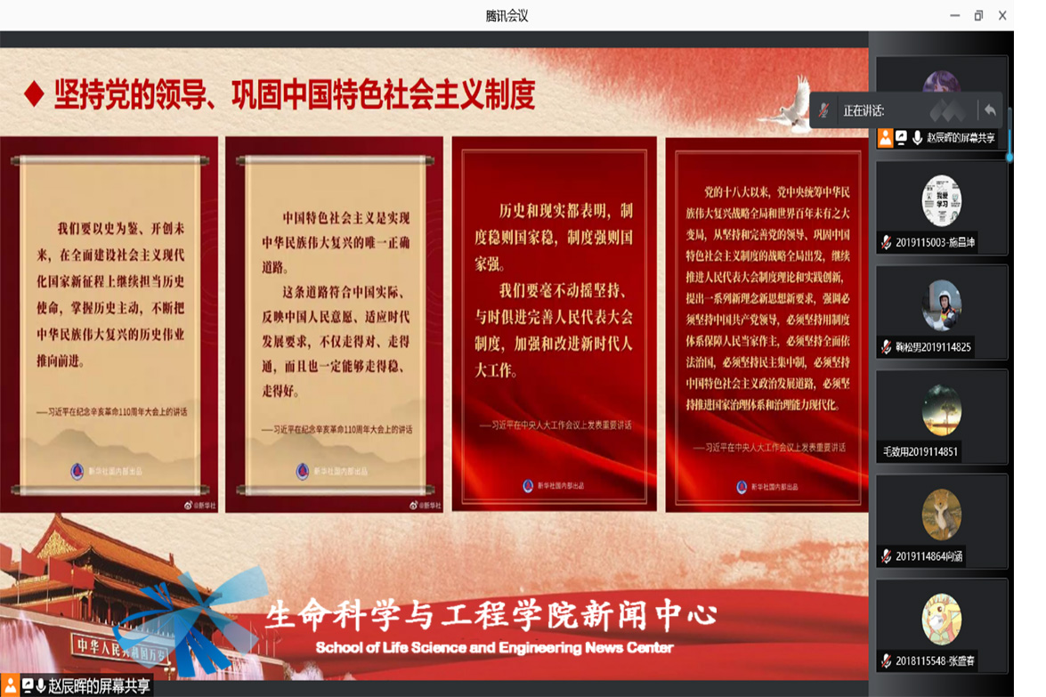 为深入开展党史学习教育,引导支部成员学习党的历史、了解政治制度、培养爱国情怀,365英国上市公司本科生物工程党支部于2021年10月25日下午8时,组织支部成员开展了主题为“中国共产党百年与政治制度建设”的线上学习会议。本次会议由赵辰晖同志主持。