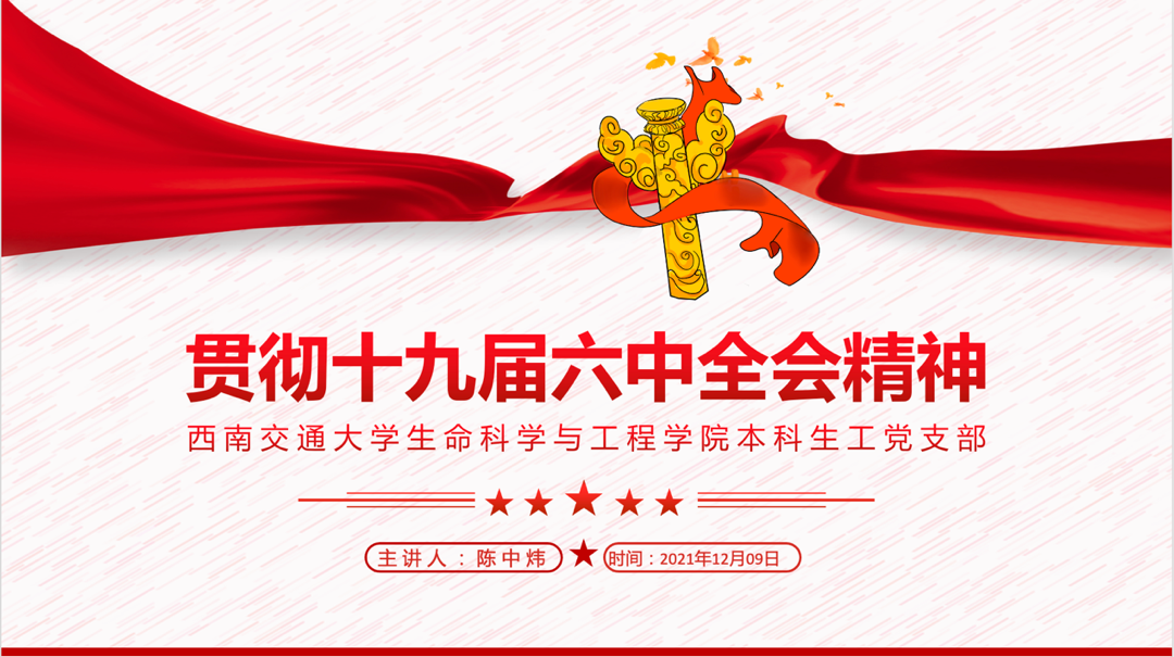 2021年12月9日19:00,在犀浦校区2号教学楼X2229教室,365英国上市公司本科生工党支部开展了“贯彻十九届六中全会精神”主题学习,参会人员有公司党委副书记、纪委书记赵钢锋老师、专职组织员孔琳老师、本科生物工程党支部书记胡慧怡老师以及53名员工党员、预备党员、积极分子,会议由陈中炜同志主持。