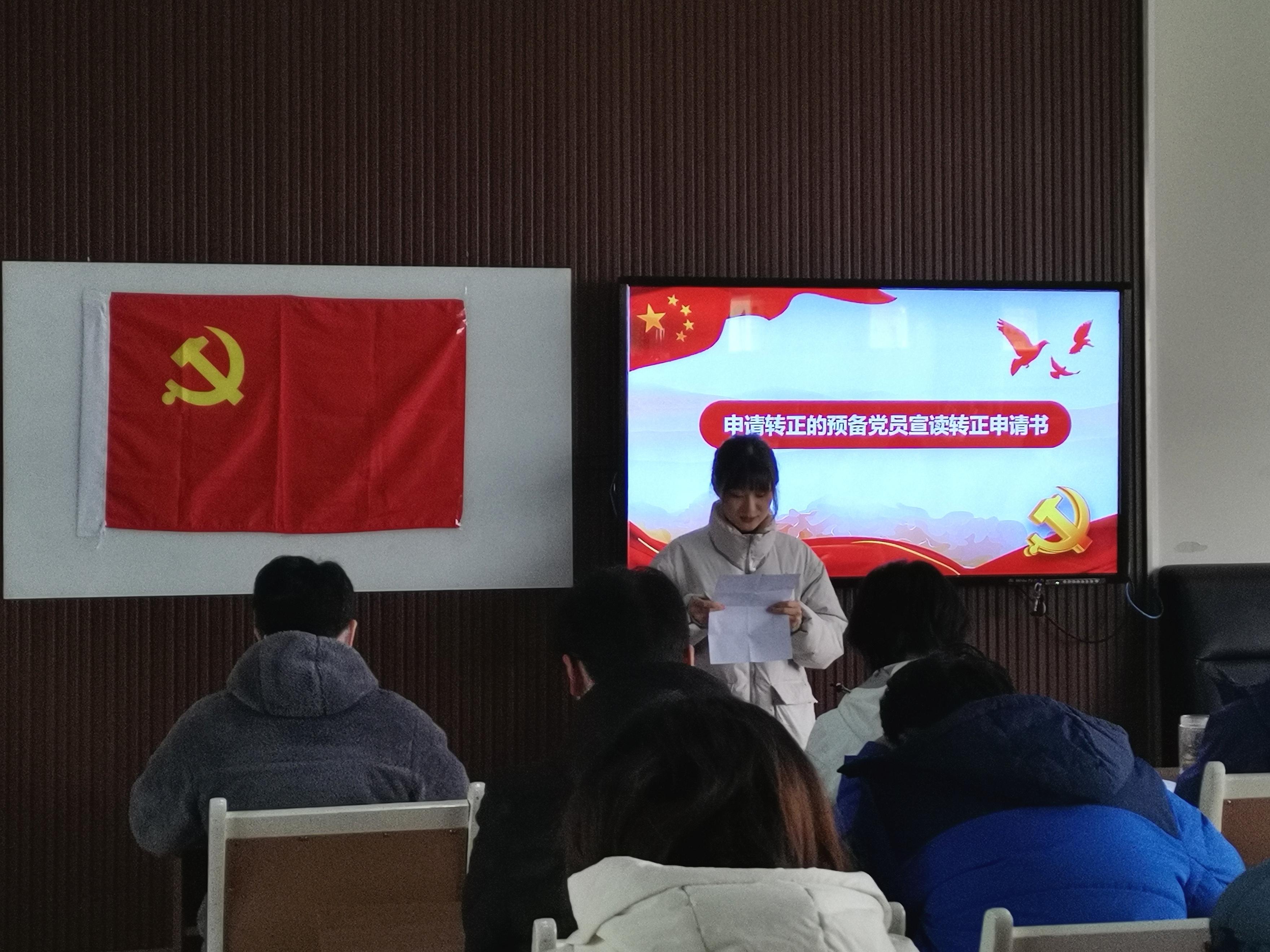 会议开始,曾旭东介绍了本次会议的流程和要求,随后9名申请转正的同志依次上台发言,宣读转正申请书,对考察期以来的思想、学习、工作、生活等情况进行了汇报,支部其他同志根据9名同志的汇报以及本人情况提问、讨论,发表意见,与本人切实开展批评与自我批评。
