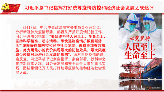 本次主题党日活动主要内容为共同学习《习近平总书记指挥打好统筹疫情防控和经济社会发展之战述评》。党员同志们重点学习了学习习近平总书记指出的“要始终坚持人民至上、生命至上,坚持科学精准、动态清零,尽快遏制疫情扩散蔓延势头”、“统筹好疫情防控和经济社会发展,采取更加有效措施,努力用最小的代价实现最大的防控效果,最大限度减少疫情对经济社会发展的影响”。通过学习,党员同志们更加坚定抗疫决心。最后通过公司防疫中的个别反面事例,警醒党员同志们严格遵守公司和当地的防疫政策,非必要,不出校。