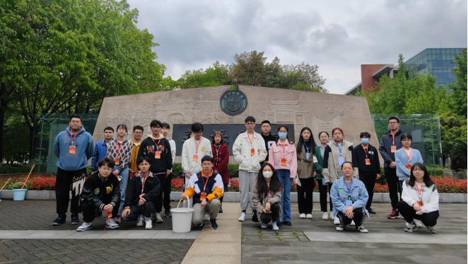4月16日15:00,2022-01期全体党员发展对象于犀浦校区内开展了“不忘初心,不负韶华”主题雕塑清洗实践活动。