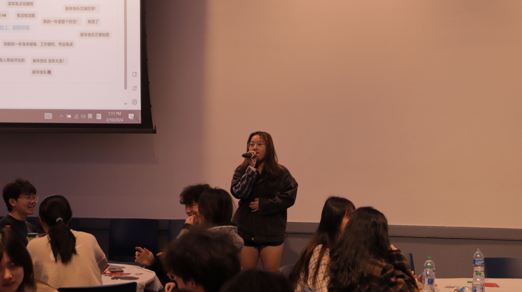 活动伊始,Phang-Chang Tai教授和Hongmei Zhang老师致辞,就同学们在美国学习交流期间取得好成绩提出表扬,对去年的学习生活进行总结,也期待未来同学们能取得更优异的成绩,最后祝愿大家在新的一年龙年大吉,万事如意。