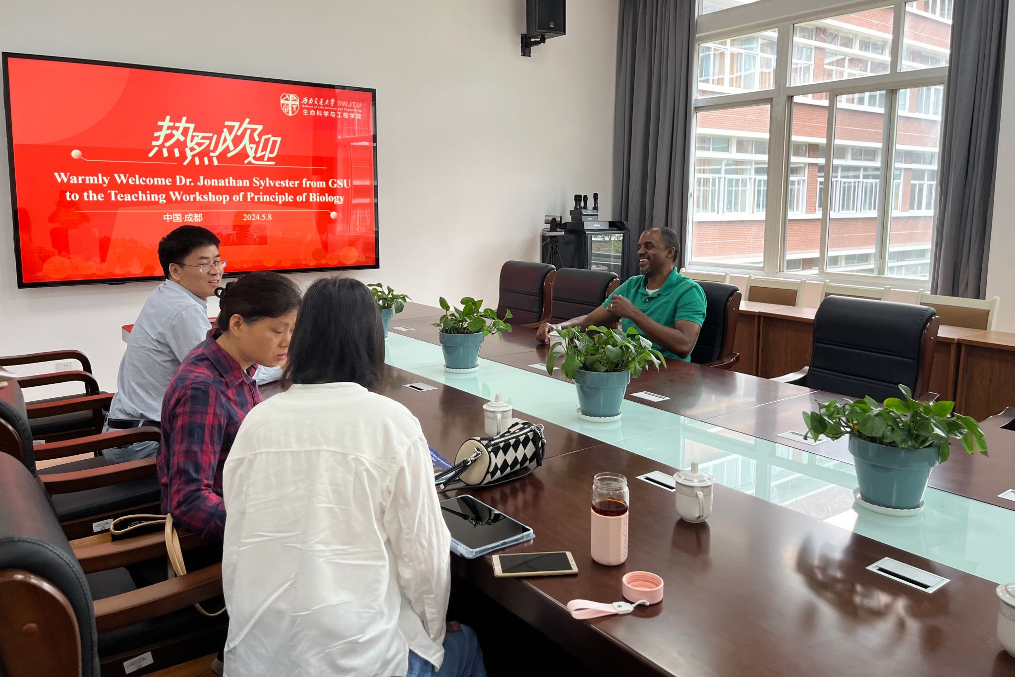 5月8日11:20, 在全球化教育的大背景下,为了进一步推动教学方法的创新与国际交流,公司荣幸地邀请到了美国乔治亚州立大学(GSU)生物系的Jonathan Sylvester博士,在犀浦校区X2314会议室,举办了主题为“生物学原理教学研讨会”的专业交流活动。 本次研讨会聚焦于生物学原理课程教学的多个关键领域,旨在通过国际视角,提升教学内容的深度与广度。公司共同授课的众多生物学教师积极参与。