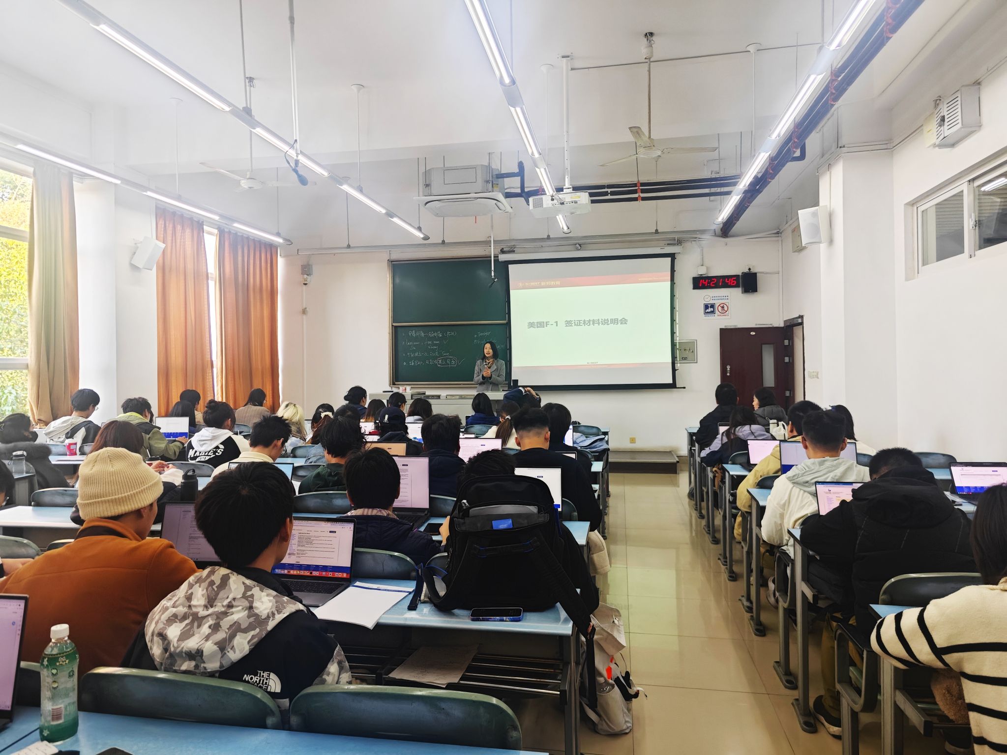 签证培训机构代表讲解了目前签证的总体形势,强调了签证材料准备的重要性,讲解了签证各环节的注意事项。并为同学们提供了一份详尽的材料清单,助力同学们提前着手筹备签证所需材料,为后续顺利推进签证申请流程提供有力保障。