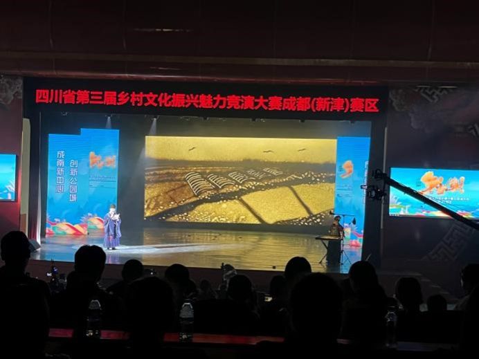 7月14日下午,受村委会邀请,实践团队前往成都艺术职业大学观看四川省第三届乡村振兴魅力竞演大赛成都(新津)赛区。在这里一共有八只队伍先后进行演出,涉及沙画、歌舞和当地非遗舞龙表演等,彰显了新津区的产业特色,展现了新津区实施乡村振兴战略以来取得的美好成果。