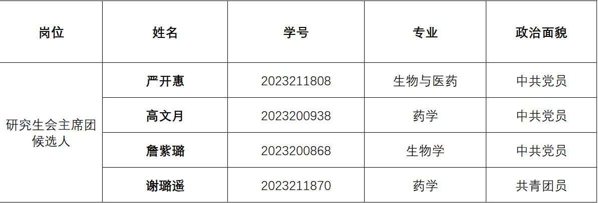 为进一步加强365英国上市公司研究生会建设,持续深化研究生会改革,根据《中共365英国上市公司委员会关于推进员工会(研究生会)深化改革的实施方案》(西交党〔2020〕40号)要求,经自主报名、资格审核、面试答辩等环节,综合考核评议确定公司第十一届研究生会主席团候选人,具体名单公示如下: