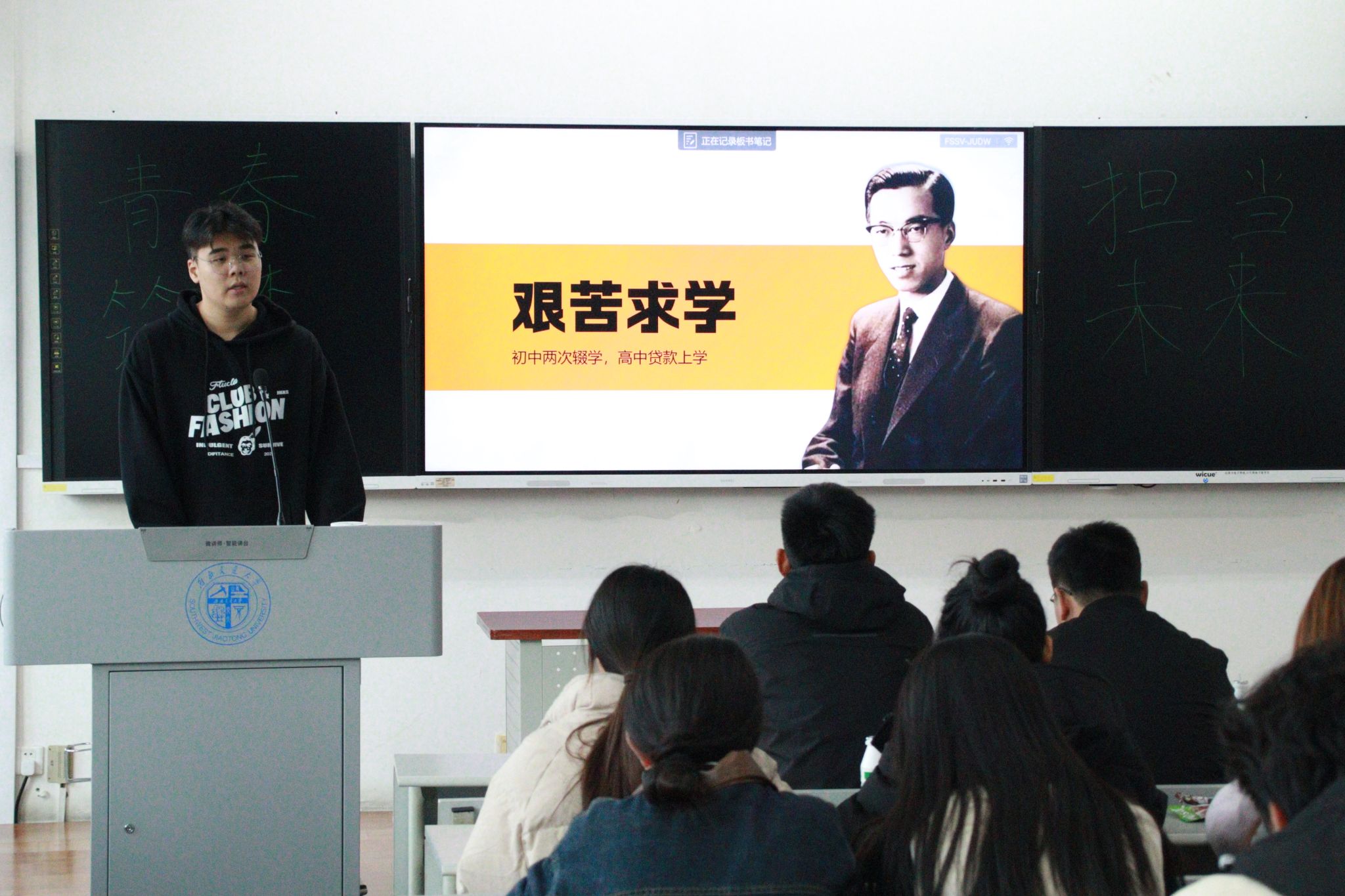 本次主题团日活动特别邀请了“繁星逐梦”科学家精神宣讲团王博同学到场分享,为大家带来了《鞠躬尽瘁为航天,德昭日月感后人》的主题宣讲。王博同学用生动的语言和丰富的图片,引领同学们穿越时光的长廊,感受“中国航天奠基者”姚桐斌的“航天之梦”,追忆他为国家富强做出的贡献。同学们被姚先生的精神深深打动,不少同学表示要以科学家为榜样,努力学习,为国家的科技进步贡献自己的力量。