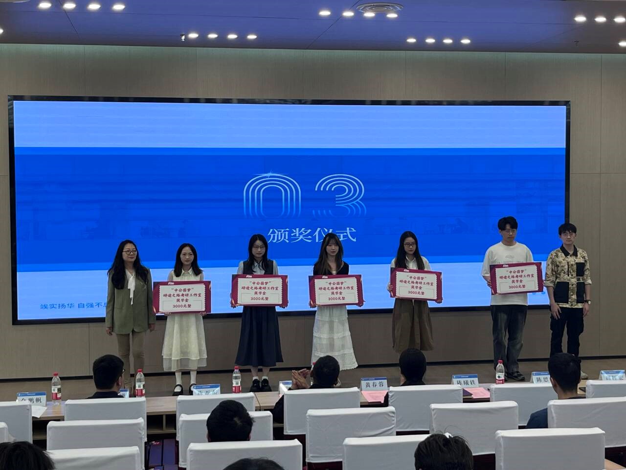 随后,人才招聘处生涯教育与就业指导科科长陈曦轶宣读了2025年考研优秀营员名单。黄春蓉、廖瑞、陈曦轶、陈思航、蒋亚东和周桎宏分别为一、二、三等奖学金获得者颁奖。