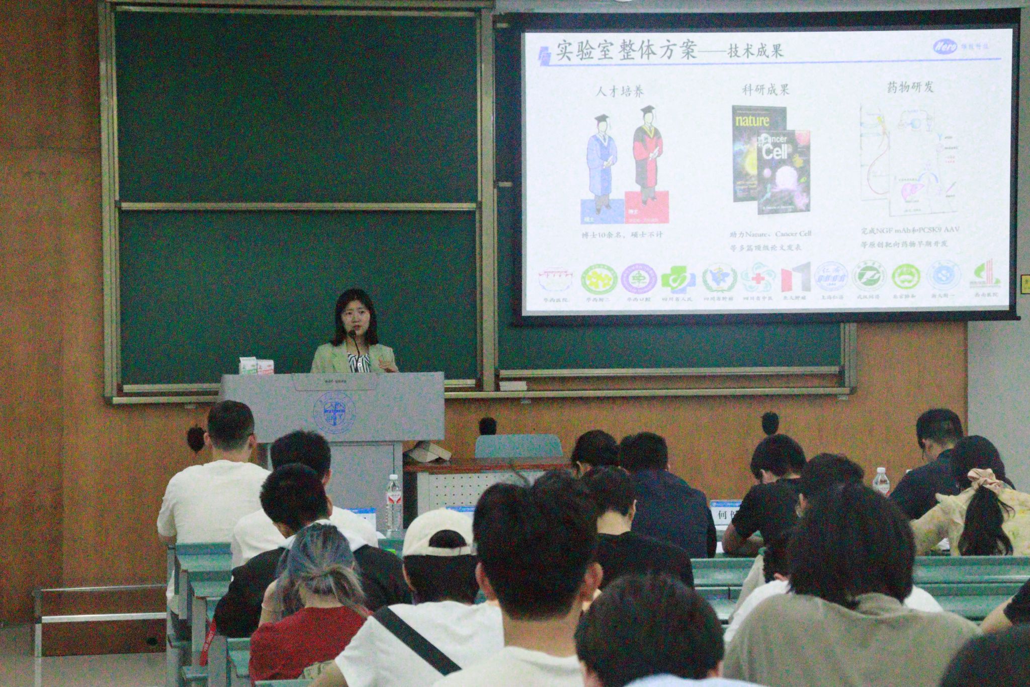 公司2011级员工、成都雄毅科技有限公司总经理贾文武作为主讲嘉宾,深入剖析生命科学仪器领域创新技术的核心驱动力与前沿趋势。他以个人职业生涯发展的四个阶段为脉络,分享了生物医药行业的从业经验,鼓励在校生注重跨学科知识整合与实践能力培养,在生物医药创新链条中找准个人价值定位。