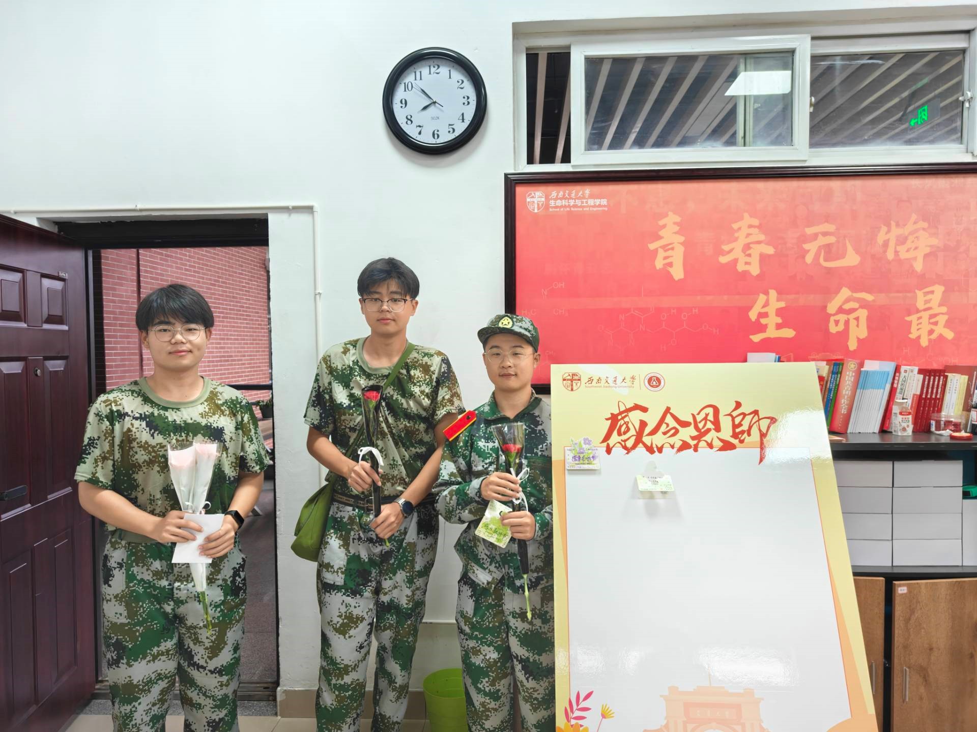 值得一提的是,正在军训的新生也将感恩的心意装入行囊。利用军训休息间隙,几名同学相约前往公司办公室,将简洁的花束和手写贺卡交到辅导员手中。贺卡上,是一句“辛苦了”—言辞简朴,真挚笃定。高年级员工们则多选择在下课或实验间歇表达谢意,有的将花束静置老师办公桌前,有的递上一封手写贺卡,“想亲口说声谢谢”成为这一天最常听见的话语。
