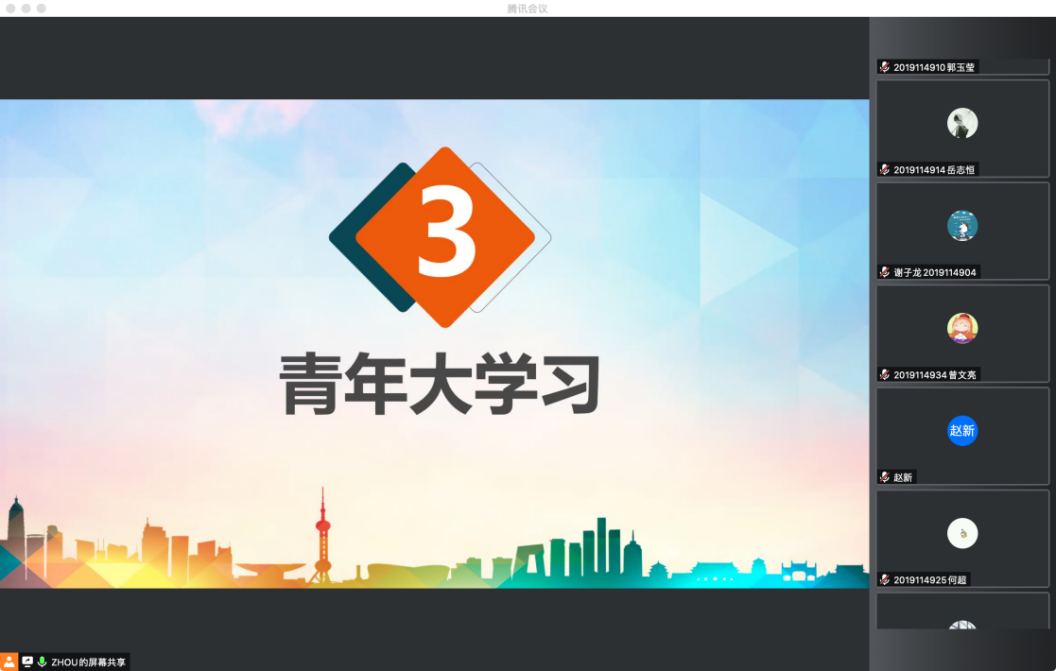 活动最后,团支书带领全体同学进行“青年大学习”网上主题团课的学习,紧跟实事,学习新思想。