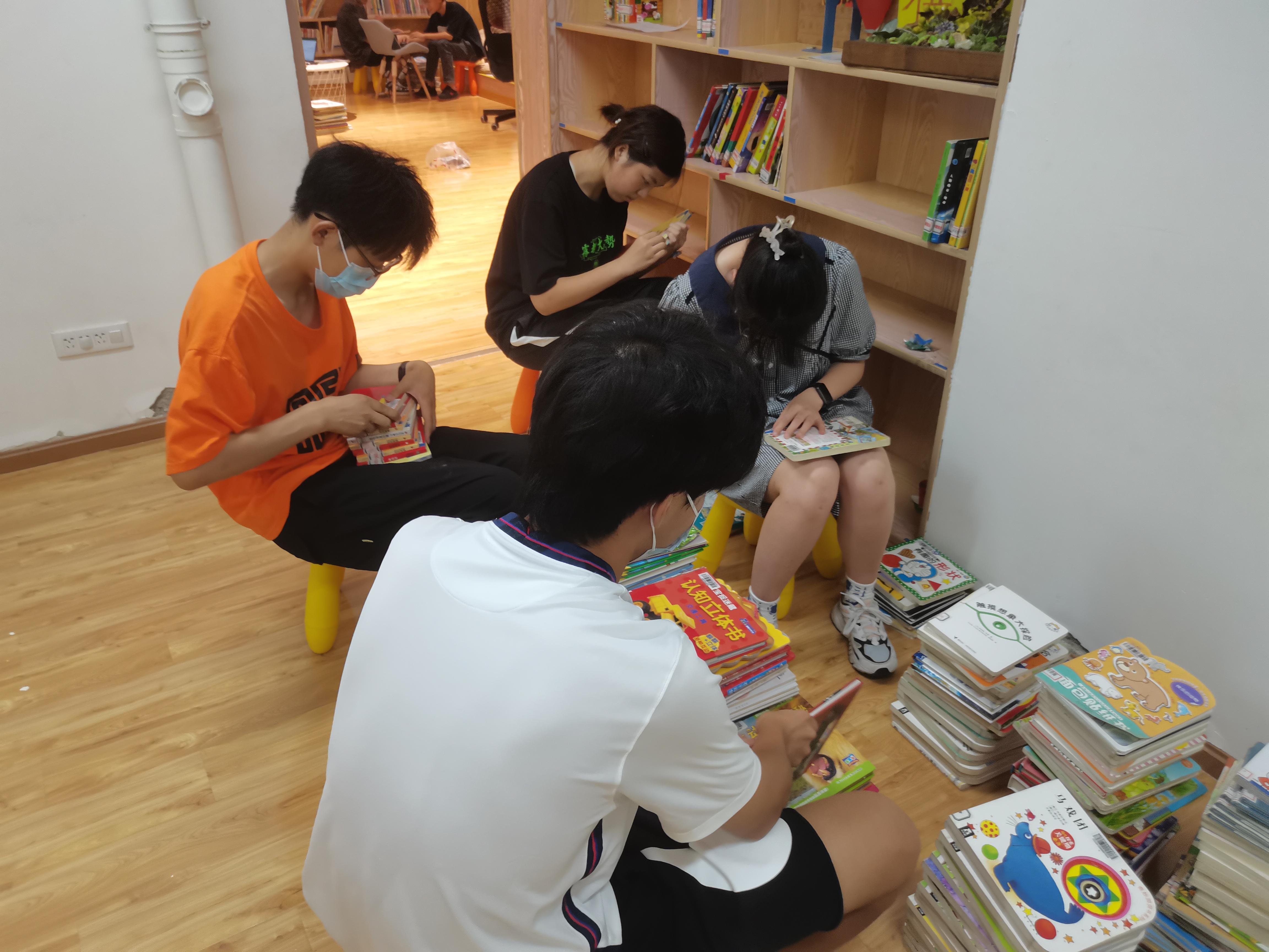 7月11日,志愿者们进行活动善后。我们帮助工作人员整理图书绘本来为小朋友提供更为整洁有序的读书环境,也在整理分类的途中感叹如今幼儿读物的科普性、专业性之强,以及幼儿对新鲜事物接受程度之高,将知识渗透在嬉戏打闹之中,更为自然,更易接受。