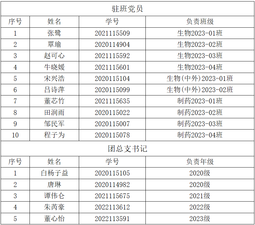 经员工自愿报名、辅导员老师推荐、公司员工工作组评议,拟确定以下15名同学为公司2023级驻班党员、团总支书记,公示如下: