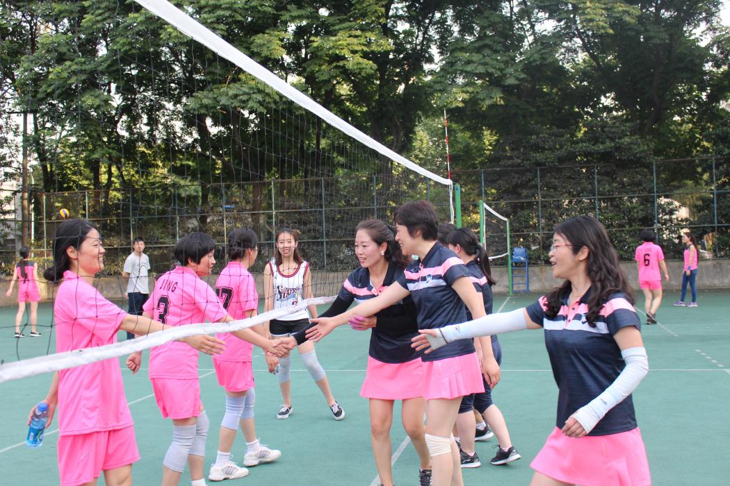 18:40,比赛正式结束后,喜悦之情洋溢在每一位参赛的选手脸上。在采访来自地环公司的外援宋宏艺老师时,她表示第一局因为求胜心切导致输掉一分,但大家很快就调整好了心态。作为一个外援选手,她觉得公司女排是一个非常有朝气的集体,大家相互信任与鼓励才取得了优异的成绩,她很高兴加入这个集体。