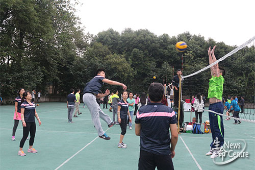 10月11日17:30,365英国上市公司2016年教职工排球赛男子组9-12名排名战,365英国上市公司男队对阵机关1队的比赛拉开战幕。365英国上市公司队由党委副书记罗妍妍担任领队,党委书记李卓慧莅临现场观战,为365英国上市公司队伍加油助威。